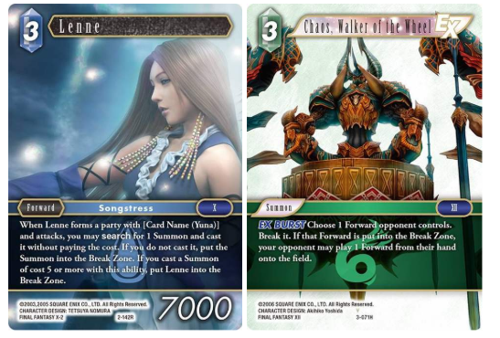 It is also worth mentioning the card Lenne (2-142R). This is another Character that wants to interact with Yuna, but not our particular Yuna since she is not a Forward. Lenne does not see many competitive matches, but it is a card with an ability that many hope finds a place in the competitive mix one day.