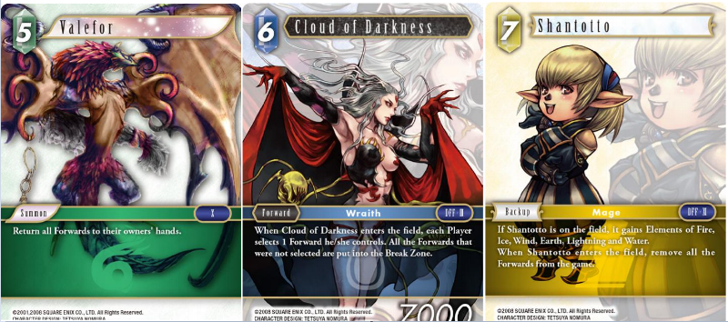 Board Wipe - Sometimes, everything has to go. Cards like Shantotto (1-107L), Valefor (1-062L), and Cloud of Darkness (1-158H) all enable a person to push the reset button on a Mono-Water player’s board who has gotten out of control. If you have access to these cards, they present an expensive but devastating answer to Cagnazzo’s board wipe. Much better to remove everything than to have only your own field be annihilated.