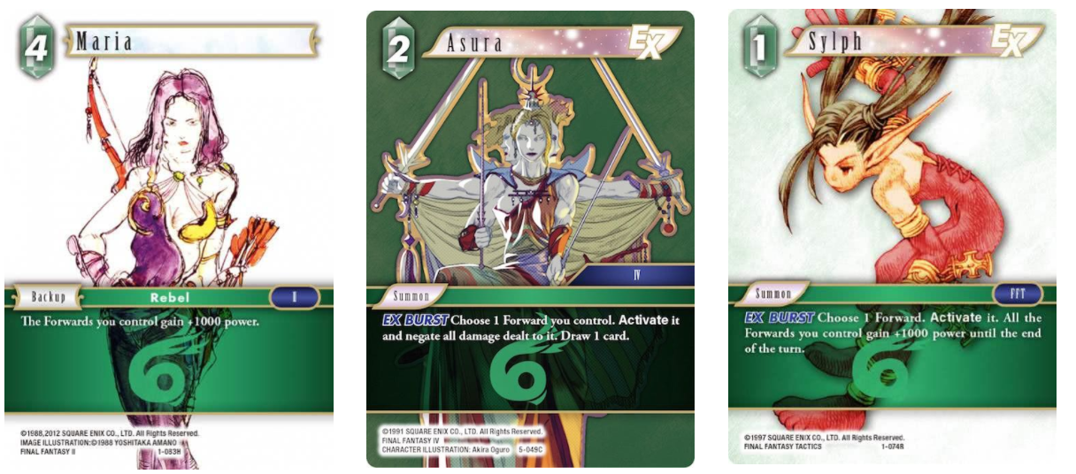 Slightly better off than Fire, Mono Wind decks don’t have a clear niche in the metagame yet, though that may be changing with Adelle (5-050H) and Arc (5-052H) providing the ability to get damage through. They do have some great tools for protecting The Emperor, so it’s always surprising when I see Wind decks not playing him. Maria (1-083H) is the only anthem effect that buffs The Emperor, and that 1000 power is a huge boon: 9000 power is way more than 8000 when it comes to surviving removal. Asura (5-049) is an exciting card that can not only blank removal and win combat, but also draws replaces itself. Sylph (1-074C) acts like a worse version of Belias, the Gigas (2-019R), perhaps saving The Emperor from removal targeting dull Forwards or pushing him out of range.