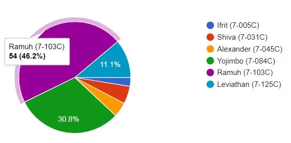 This was our closest category, with the power reduction summon edging out it out by a comfortable margin. Some Opus VII summons may see more competitive play than the others, but power reduction and a shift for many forwards seeing play with just 7000 power put Ramuh over in the polling.